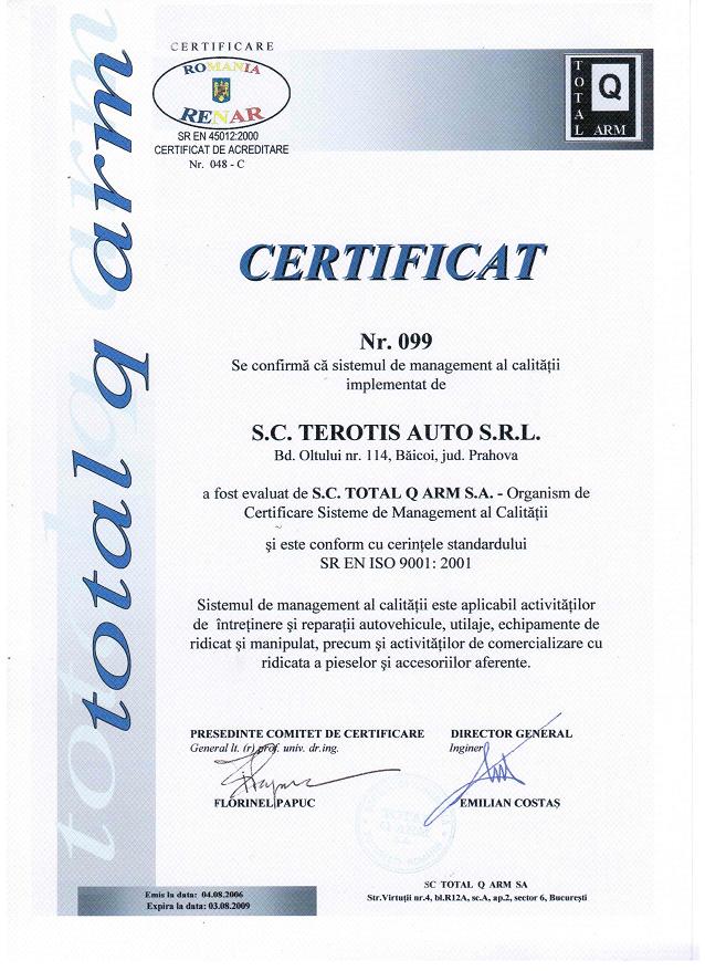 - Autorizatie ISCIR pentru reparare, intretinere si revizie mecanisme de ridicat cu sarcina maxima 100 t